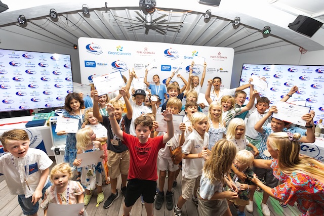 This year, 48 children crossed the Atlantic with the ARC+ fleet, which was an all-time record. Each child earned a medal and a certificate for their remarkable accomplishment. Special recognition was given to Skye and Bee on Blue Ocean for looking after ARC+ mascot, Archie the Monkey, during the journey.