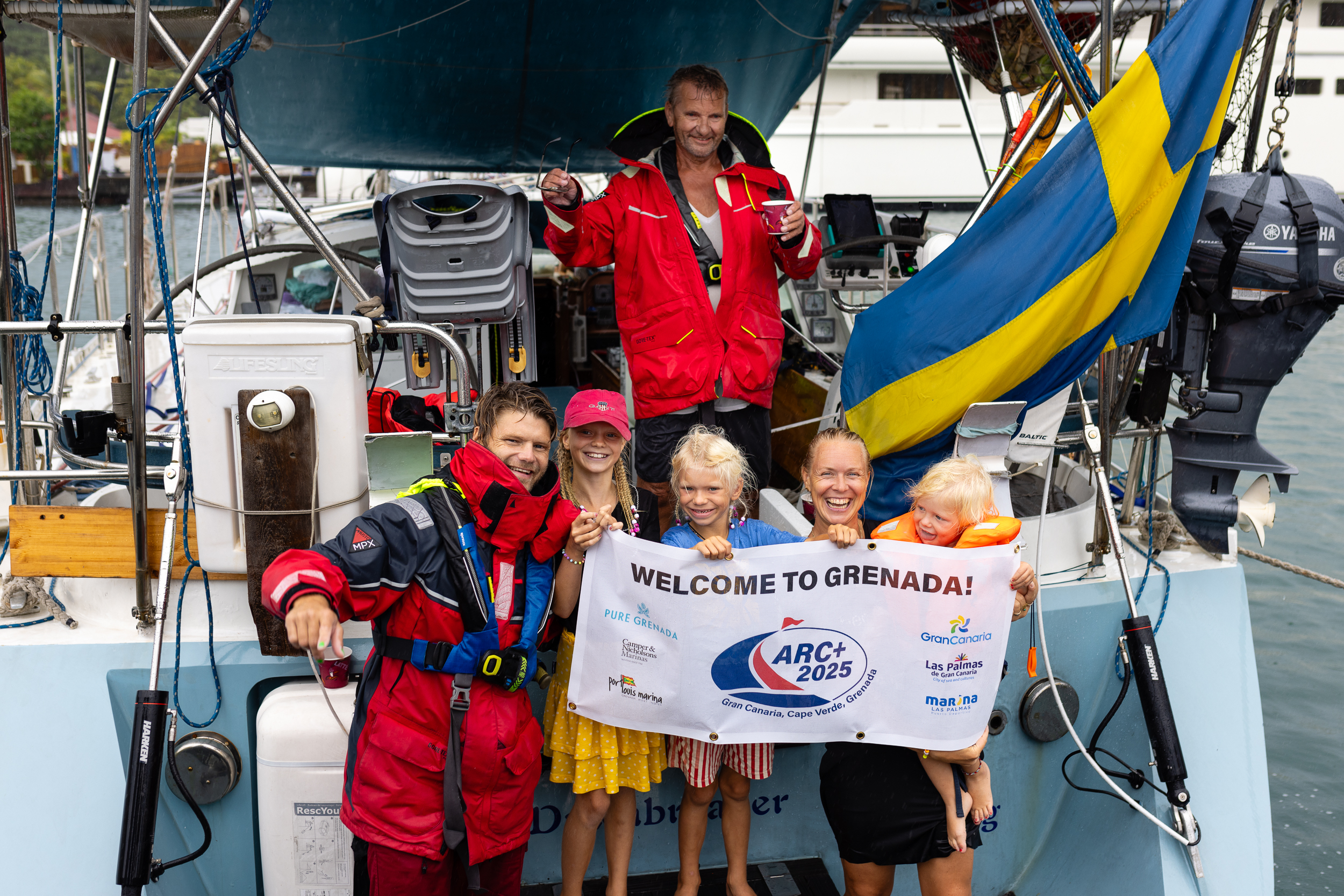 After all the excitement of the arrival of the super-fast multihull, Jean Jullien’s Outremer 55-2 Enjoy the Silence, after just over 10 days, the next big celebration was the first family boat, Dawnbreaker - the Swedish Kanter 64 monohull - skippered by Karl Nerman, who arrived two days later. It was a fantastic achievement for the 2002-built Kanter 64 which has thousands of nautical miles under her keel - with father Lars having sailed his beloved boat to far off places for many years. The passing of the baton has certainly continued, with Karl, his wife Anna and their three young children persuading Lars to join the family-orientated ARC+ for their Atlantic circuit.
