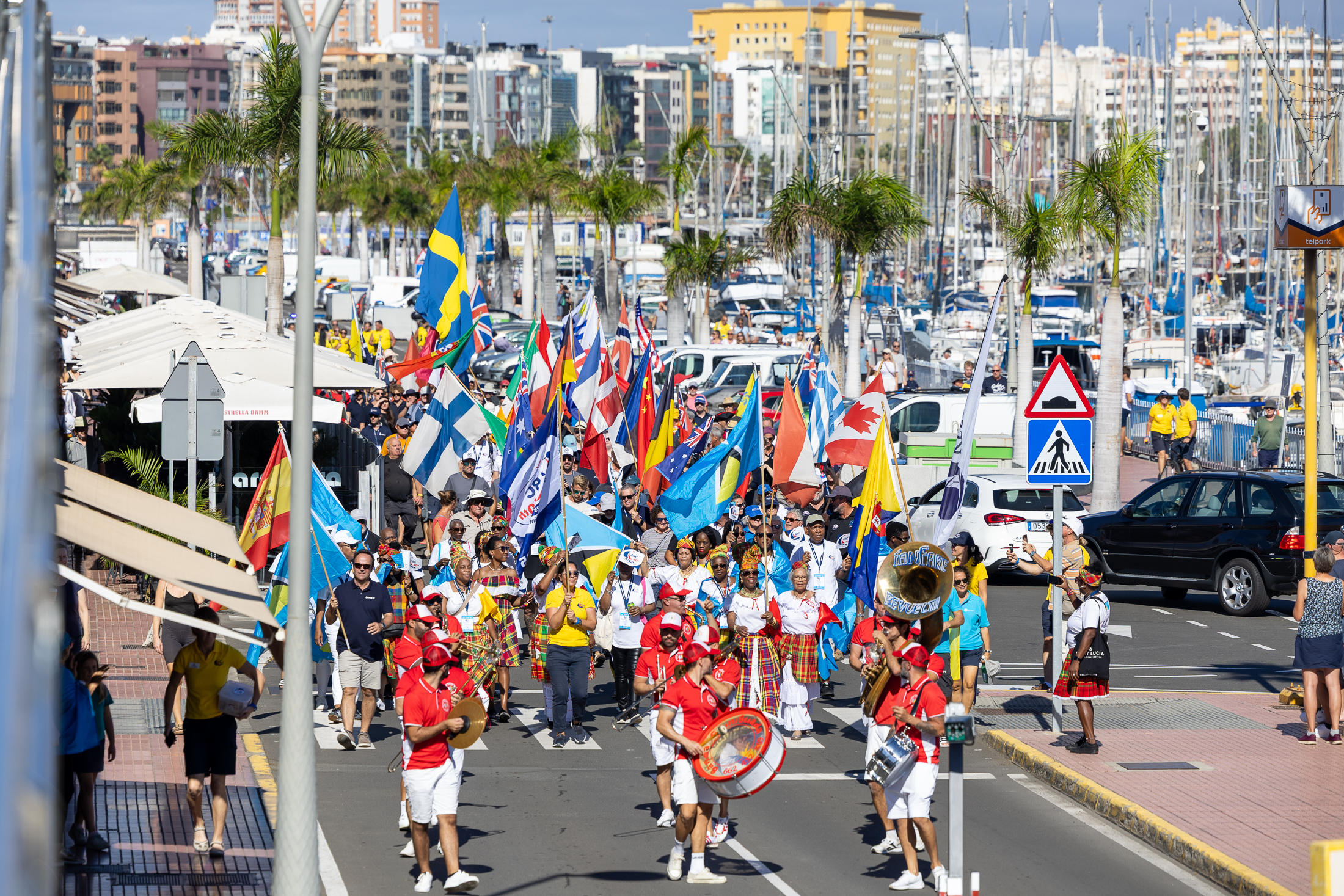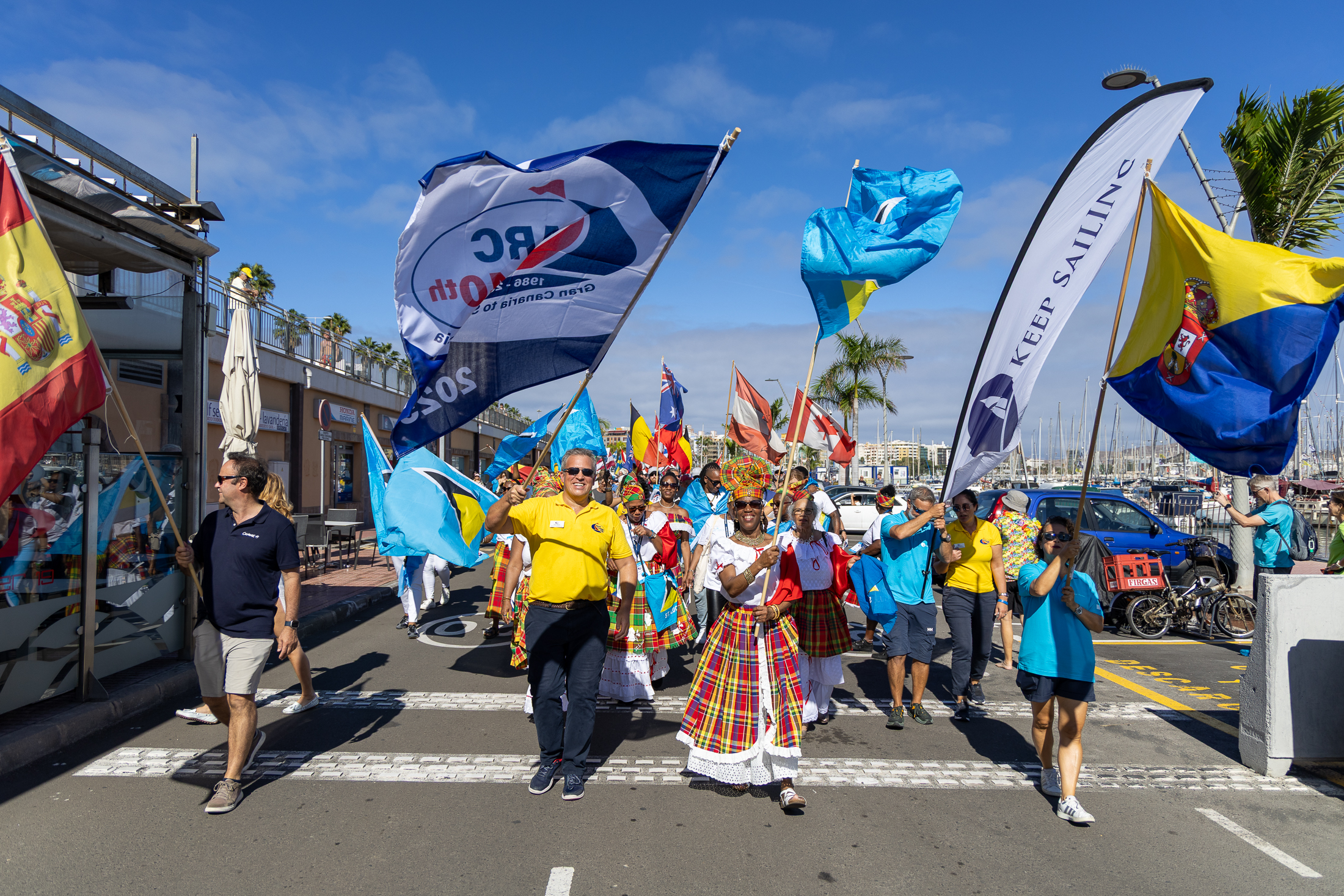 The opening ceremony began at the northern end of the marina, where participants gathered holding flags from their respective countries. There was then a colourful procession along the main promenade of the Port of Las Palmas which finished next to the main marina offices.